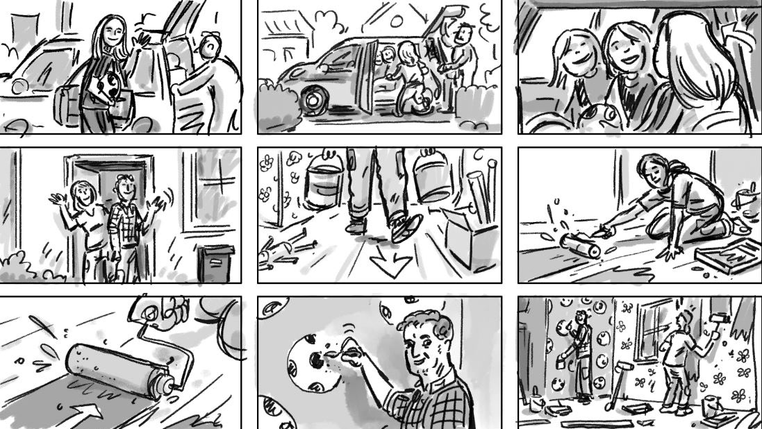 Rough storyboard for 2 commercials for Jula. Directed by Traktor. Produced by Giants & Toys.